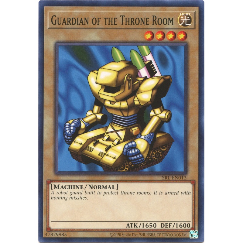 Set: Spell Ruler (25th Anniversary Edition) Card type: Normal Monster Rarity: Common Attack: 1650 Defense: 1600 A robot guard built to protect throne rooms, it is armed with homing missiles.